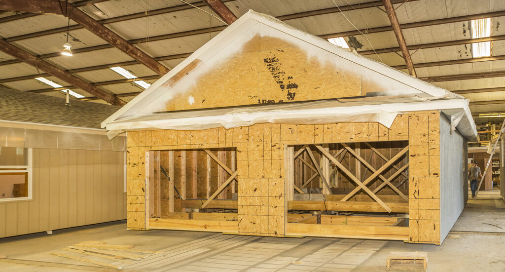 “We construct the home in the same order as a site builder,” Scott says. “We begin by framing the floors, walls, roof and then drywall. Assembly-line manufacturers will adhere the drywall while it’s on the table, whereas that is where we put on the siding.”
