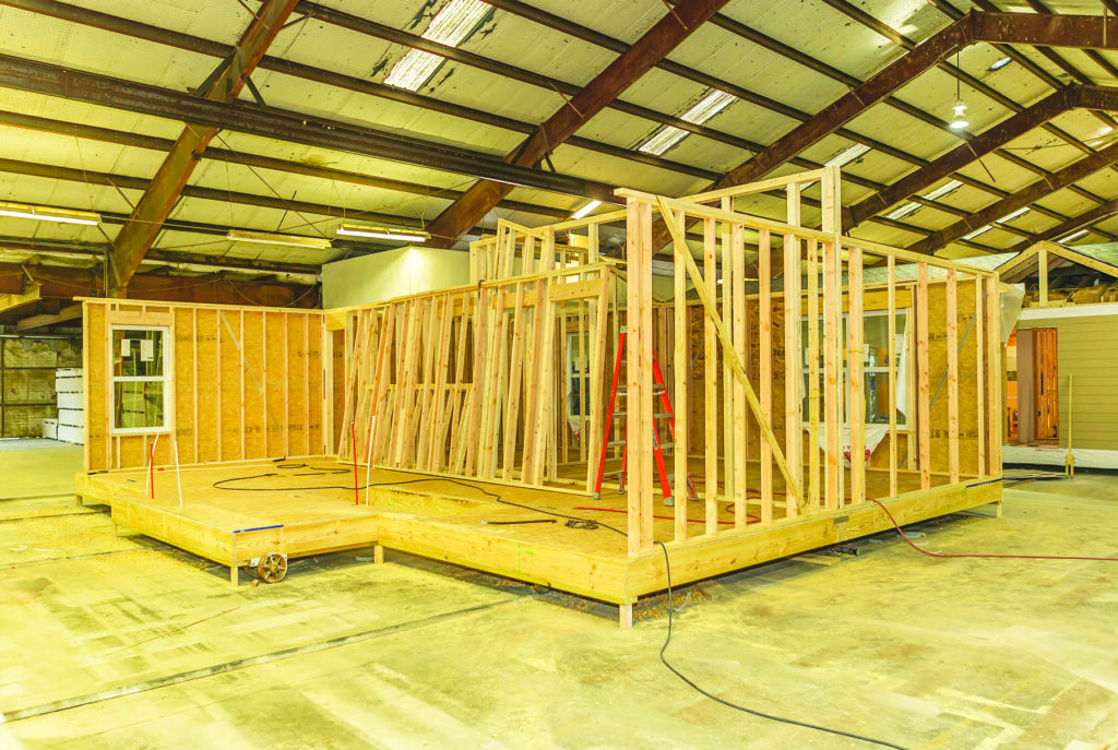 Although workers build modules on a rail system and use jigs to make the work more efficient, Advanced Systems Homes’ operation is very similar to on-site stick building, only indoors.